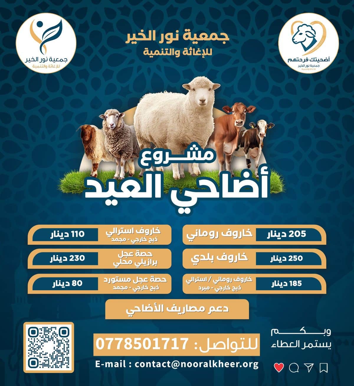مستمرين معكم حتى آخر أيام العيد في مشروع أضاحي العيد 2025 جمعية نور الخير للإغاثة والتنمية تطلق مشروع الأضاحي لهذا